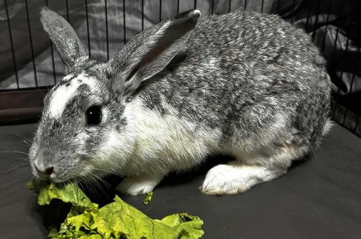 Goose was the very last of the abandoned rabbits to be captured at a farm stand in the Southern Tier. His favorite greens are kale and lettuce, and he loves treats.