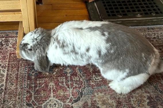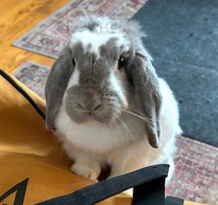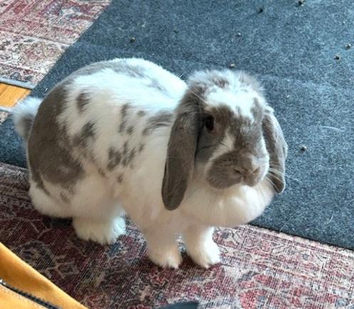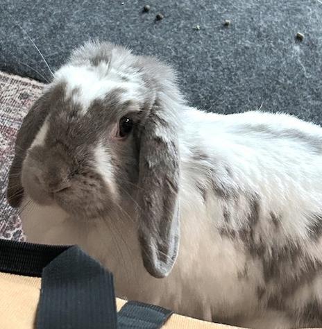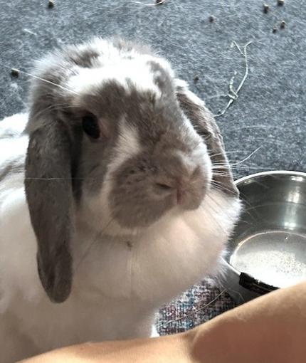 She’s happy to get petted, is easy to handle and is great with her litter box habits. She's getting used to a better bunny diet in foster, with an emphasis on hay and greens, and a water bowl instead of a bottle.